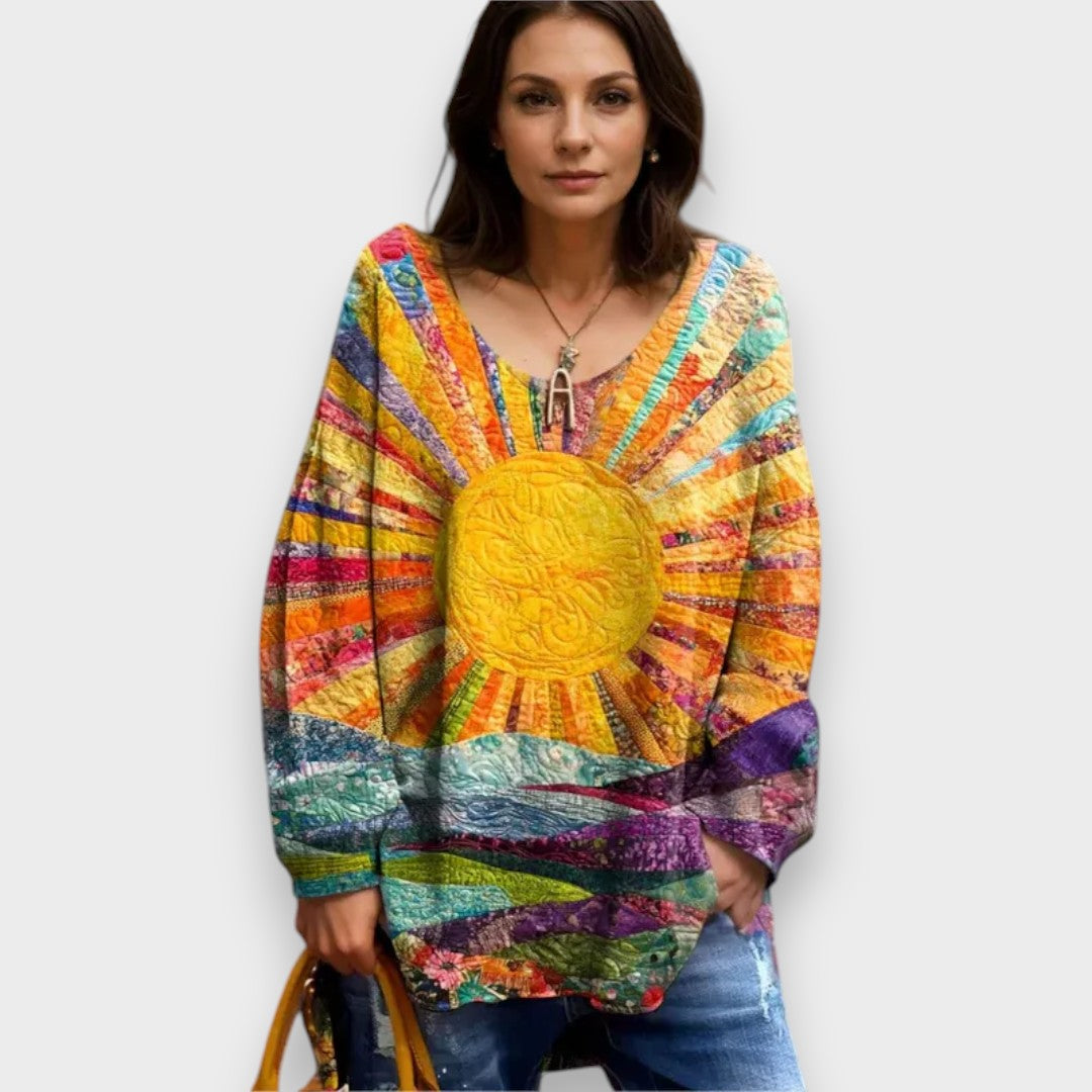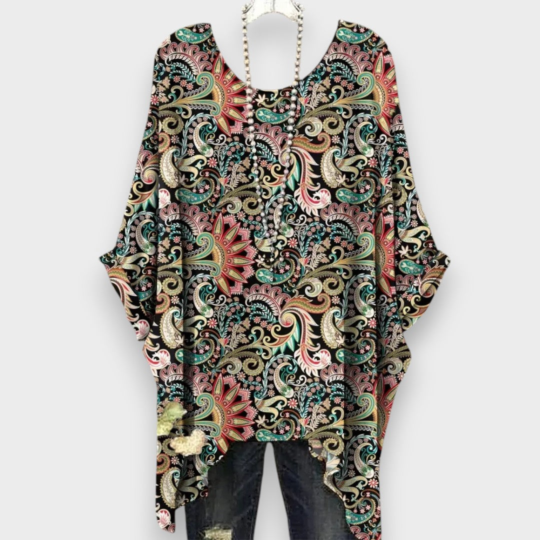 Afra | Yazlık Kadın Etnik Baskılı Rahat Kısa Kollu Tişört