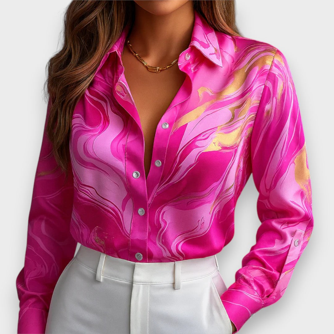 Akasya Nur | Bol Kesim Kadın Uzun Kollu İpek Gömlek Düz Renk Üst