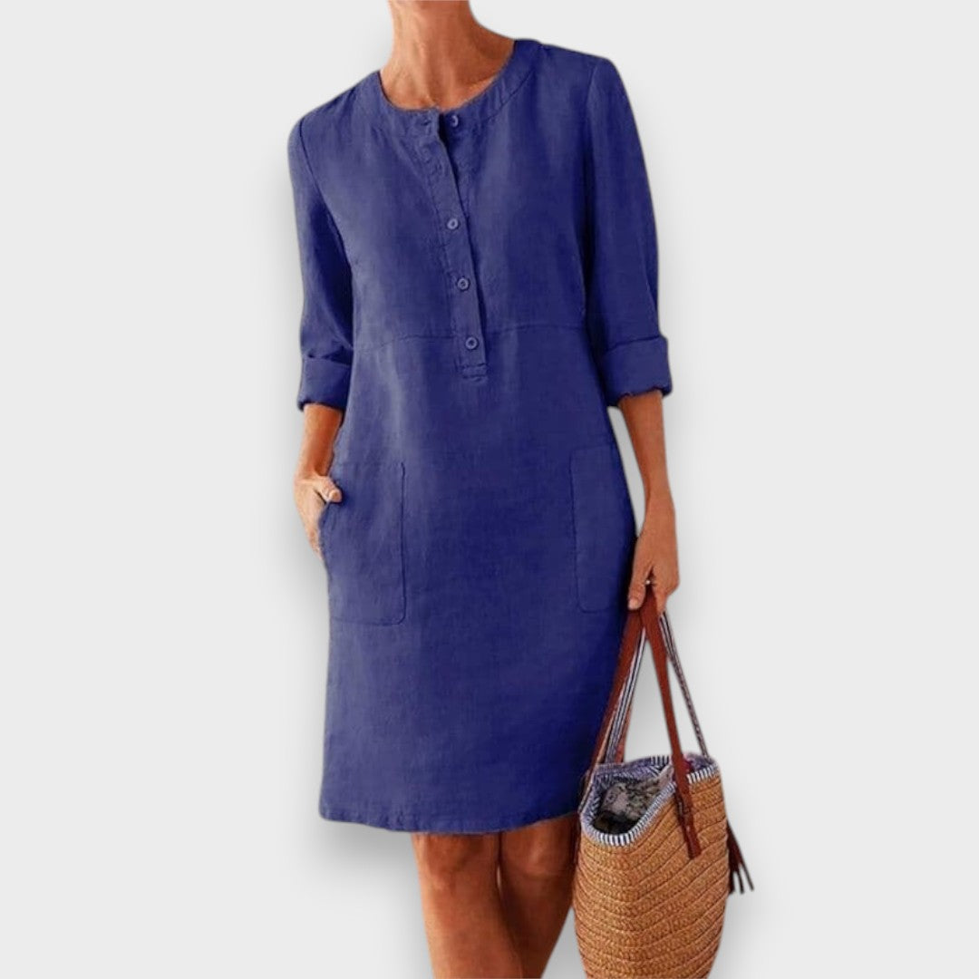 Aysun | Kadın Keten Gömlek Elbise – Hafif, Rahat ve Cepli