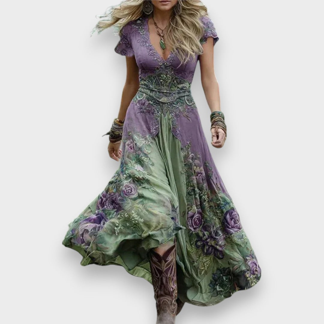 Ayşina | Zarif Uzun Çiçekli Elbise