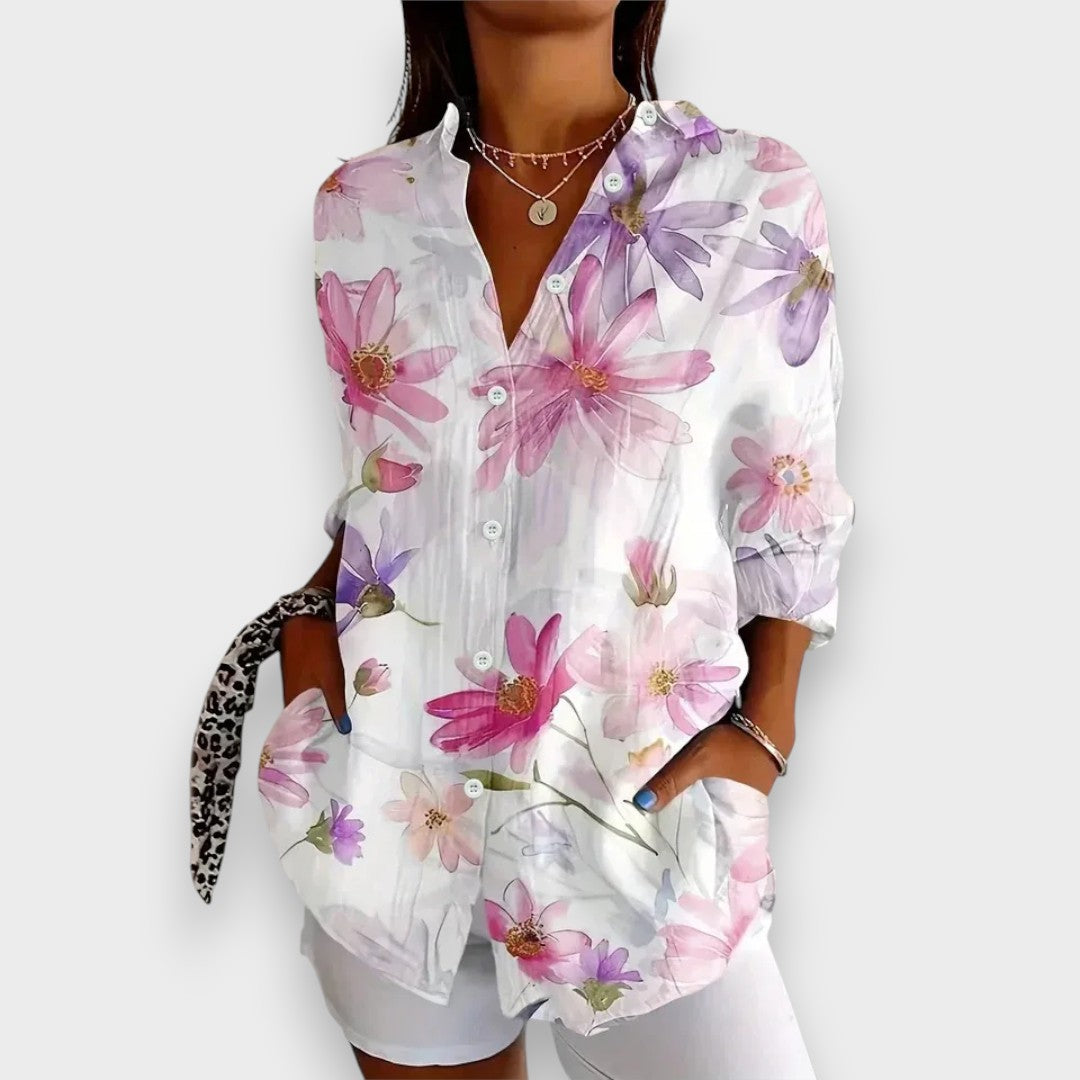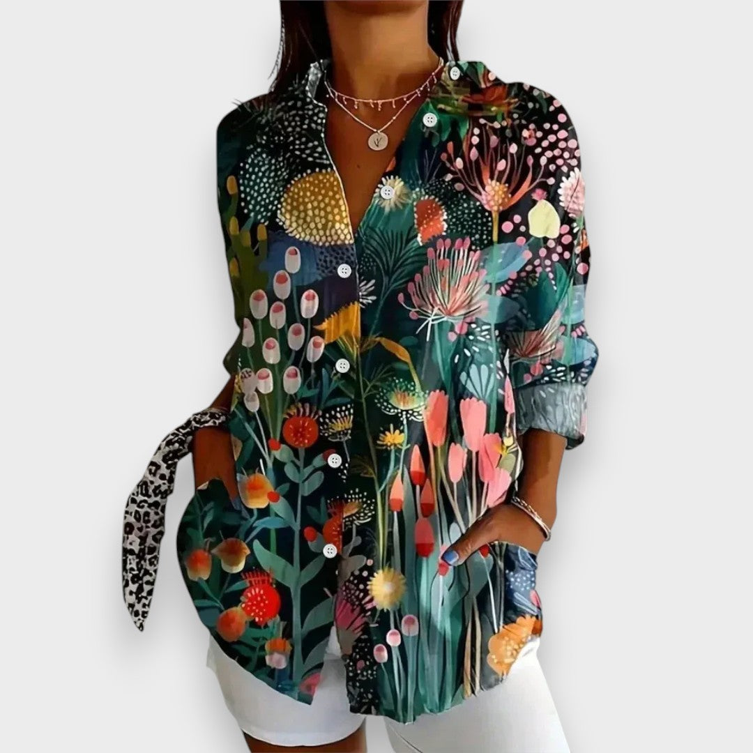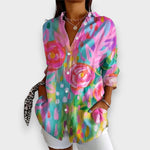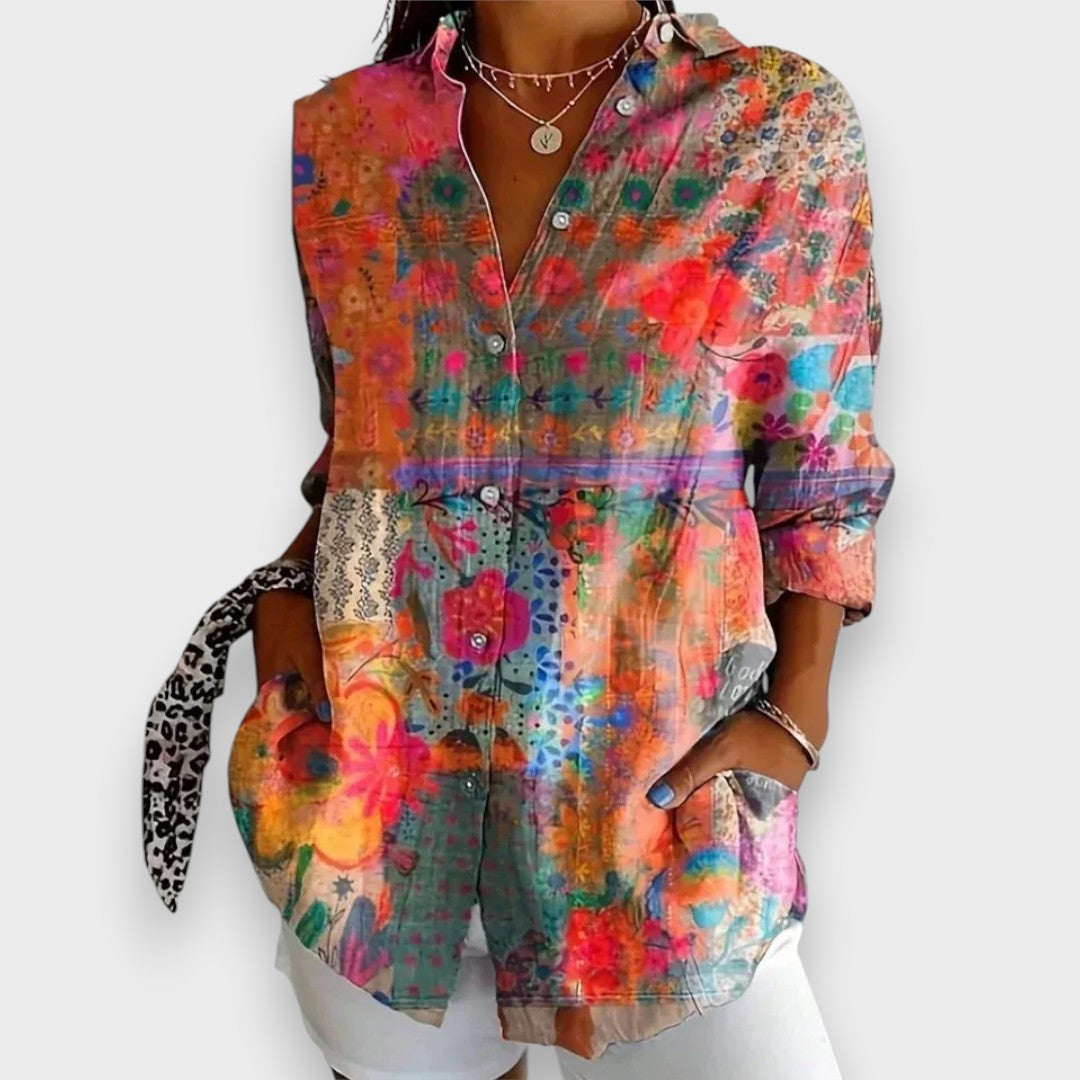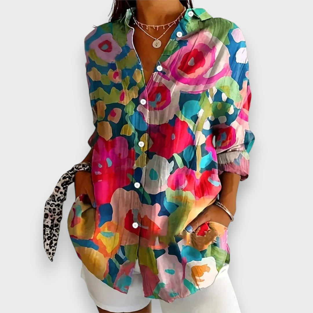 Cilde nazik, görünümde renkli ve her gün için eğlenceli – İrem | Sanatsal desenli renkli bluz