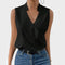 Çapraz kesimi ve sade yaka detayıyla bu kolsuz bluz, modern ve zarif bir görünüm arayanlar için mükemmel bir seçim. Temiz ve şık tasarımı sayesinde hem ofis stiline hem günlük kombinlere kolayca uyum sağlar.