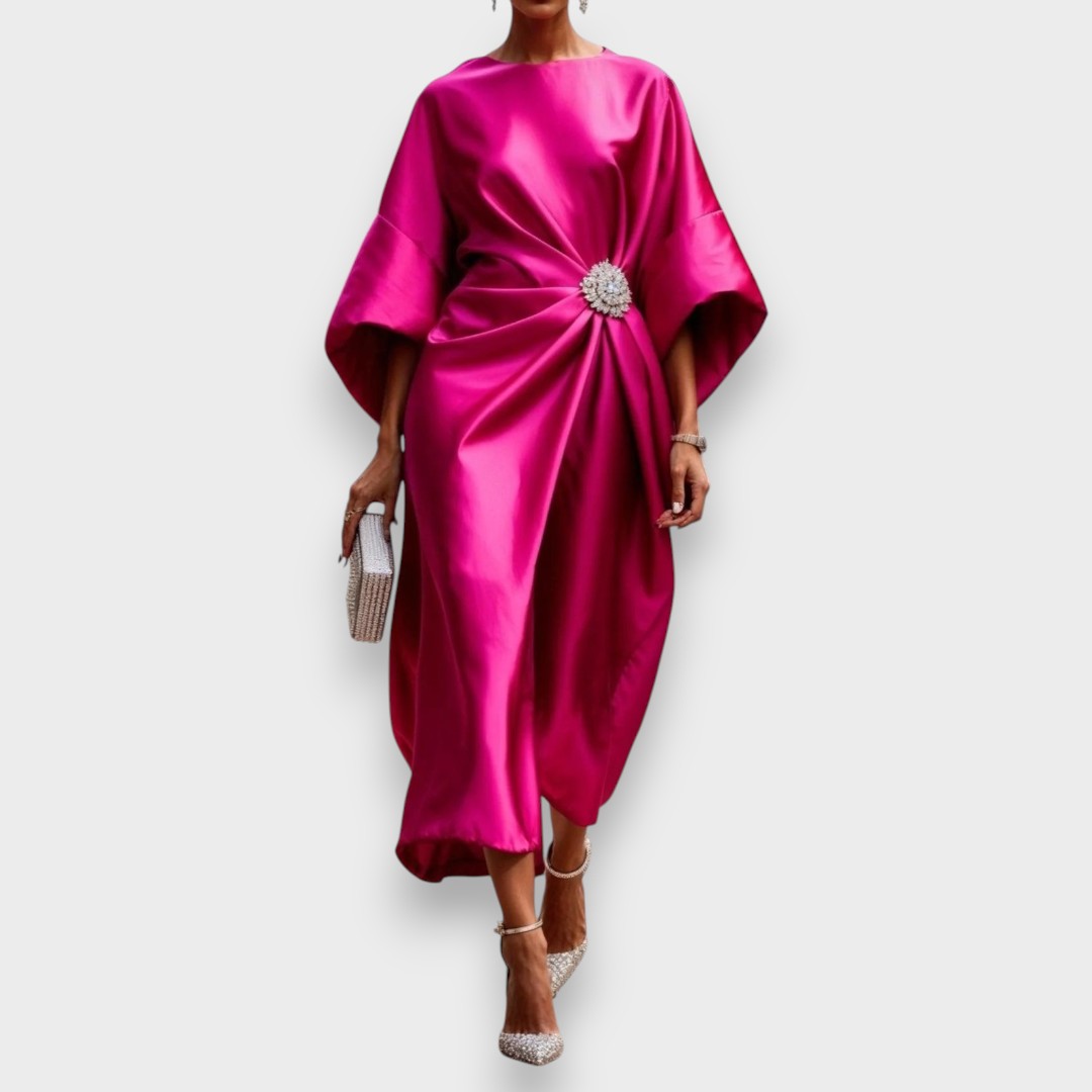 Hatice | Lüks Işıltılı Saten Uzun Elbise