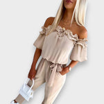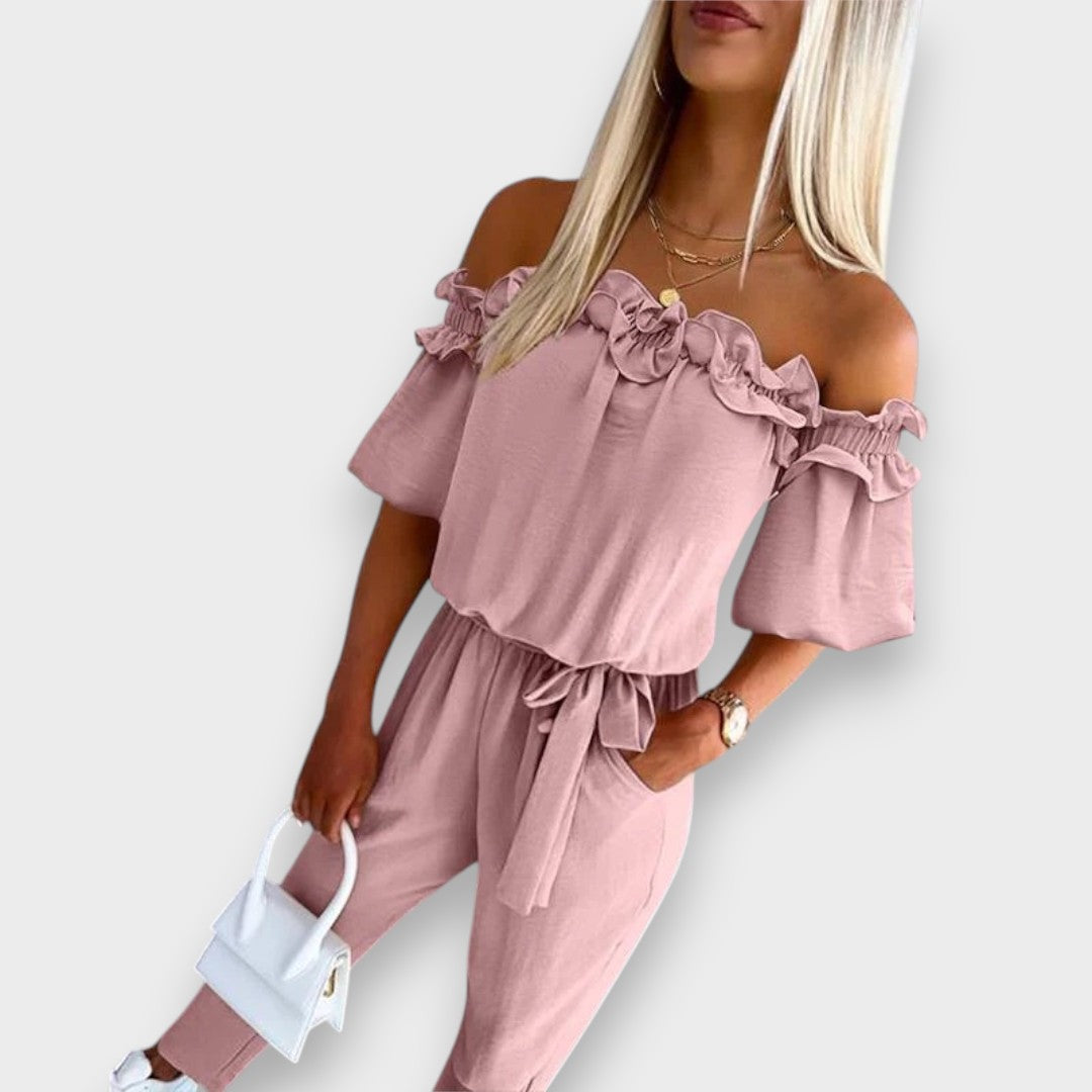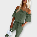 Aysima | Şık Omuz Açık Fırfırlı Bel Bağcıklı Tulum