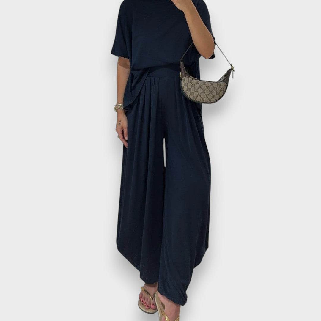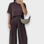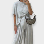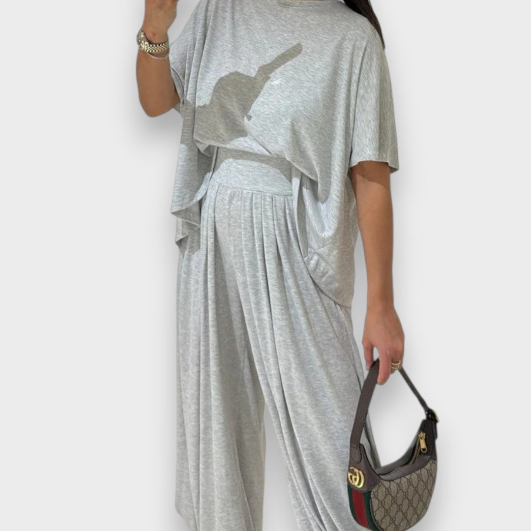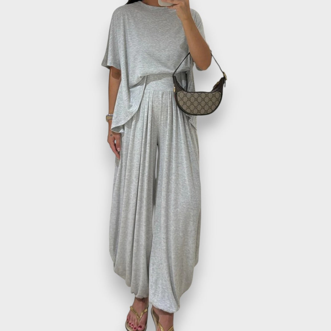Diclehan | Açık Gri Günlük Üst ve Bol Paça Pantolon Takımı