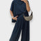 Pamuk ve modal karışımından üretilen bu takım, iyi nefes alabilirlik ve nem emicilik sunarak gün boyu konfor sağlar. Yumuşak dokusu sayesinde doğal bir dökümlülük oluşturur ve genel görünüme rahat, sade bir şıklık katar. Günlük kıyafet arayanlar için hem rahat hem de stil sahibi bir seçenektir.