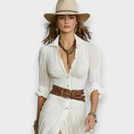Aişegül elbise, zarafeti ve sadeliği bir araya getirerek gardırobunuza şık bir dokunuş kazandırır. Uzun ve akıcı formu, şal yaka detayı, tek sıra düğmeli tasarımı ve bele oturan kemeriyle her ortamda zarif bir duruş sergiler. Gündüzden geceye zahmetsiz geçişler için mükemmel bir seçenektir.