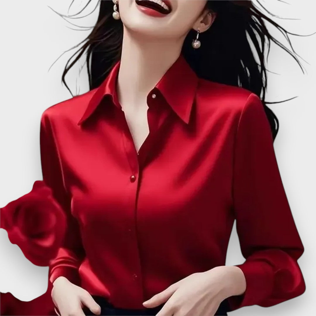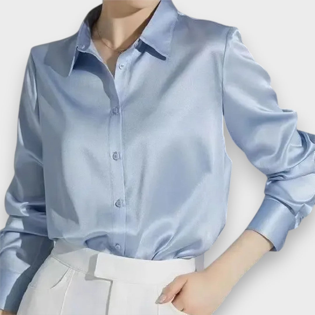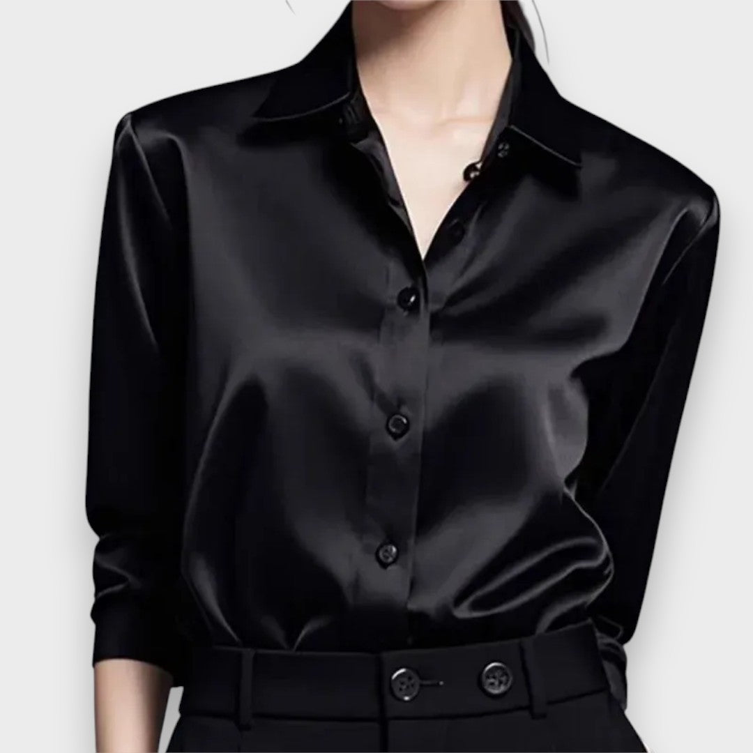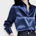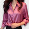 Akasya Nur | Bol Kesim Kadın Uzun Kollu İpek Gömlek Düz Renk Üst