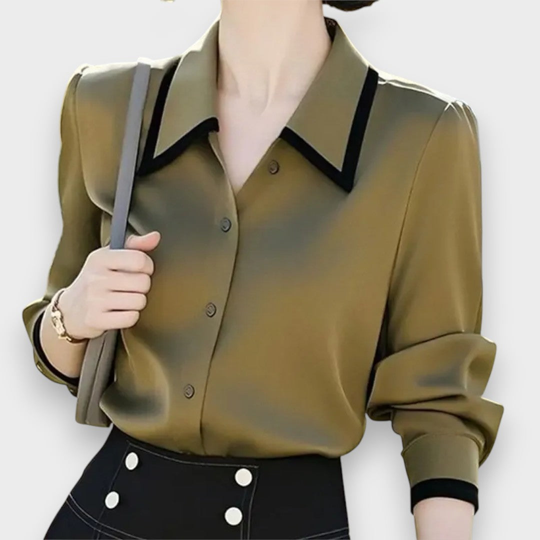 Alara Nur | Uzun Kollu Kontrast Bluz – Ofis ve Günlük Şıklık