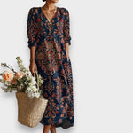 Alara Su | Vintage Çiçekli Keten Tunik Elbise