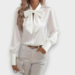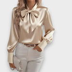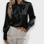 Albeni | 2025 Kadın Fiyonklu Saten Bluz – Uzun Kollu, Şık ve Zarif
