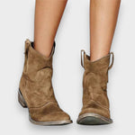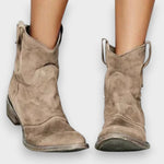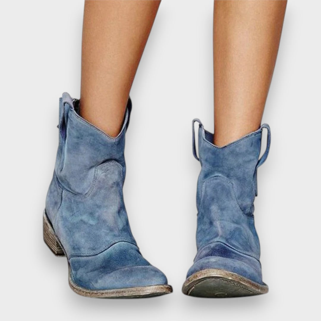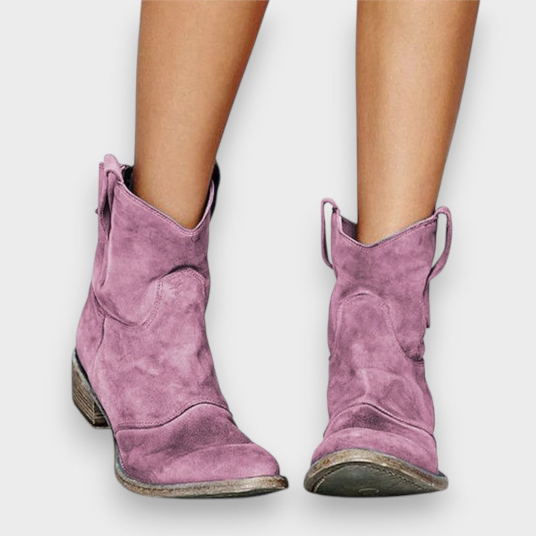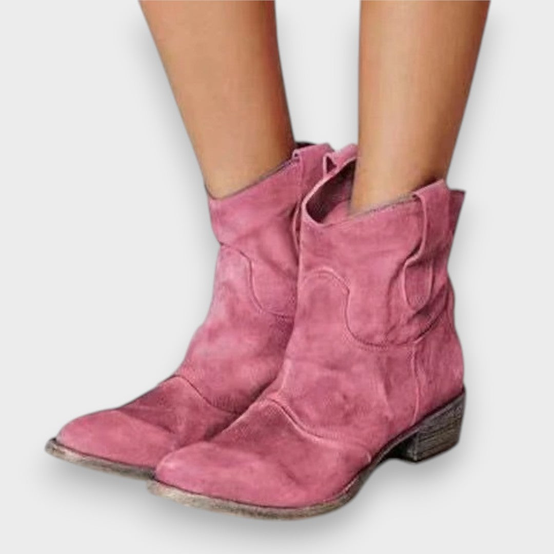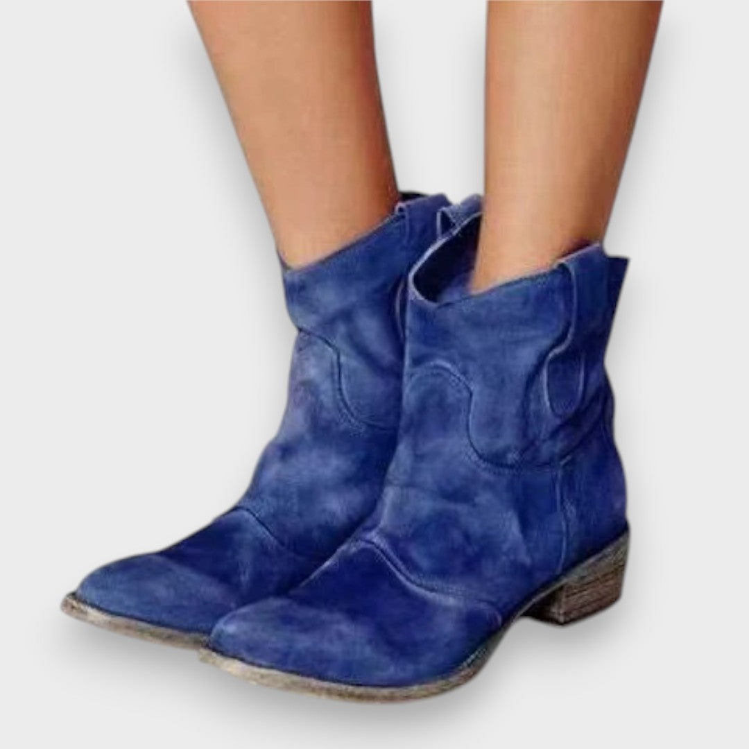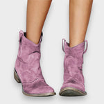 Tončka deriden yapılmış süet çizmeler ile rahat batı tarzını günlük kullanım için pratik bir şekilde birleştirin. Belirgin dikişler, hafif yuvarlatılmış uç ve rahat kare topuk, özgün bir görünüm ve mükemmel bir giyim rahatlığı sağlar.