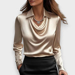 Burcu | Lüks parlaklığa sahip pile yakalı bluz