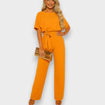 Gardırobunuza zarif bir dokunuş katın: Ecehan, ayarlanabilir kemer bağcığıyla vücudu nazikçe şekillendirirken akışkan dokusuyla gün boyu rahatlık sunar. İster günlük şıklıkta ister özel bir davette—her anınıza uyum sağlayan zamansız bir tulumdur.