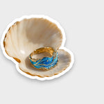 Açık mavi tonları, ay ışığı altında huzursuzca hareket eden sudan doğar; küçük bir detay ise denizin vahşi kalbini ortaya çıkarır. Dalgaların sırrını ve gücünü taşımak isteyenler için bir tılsım.