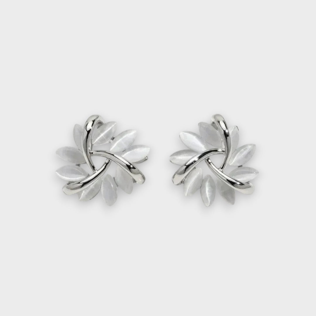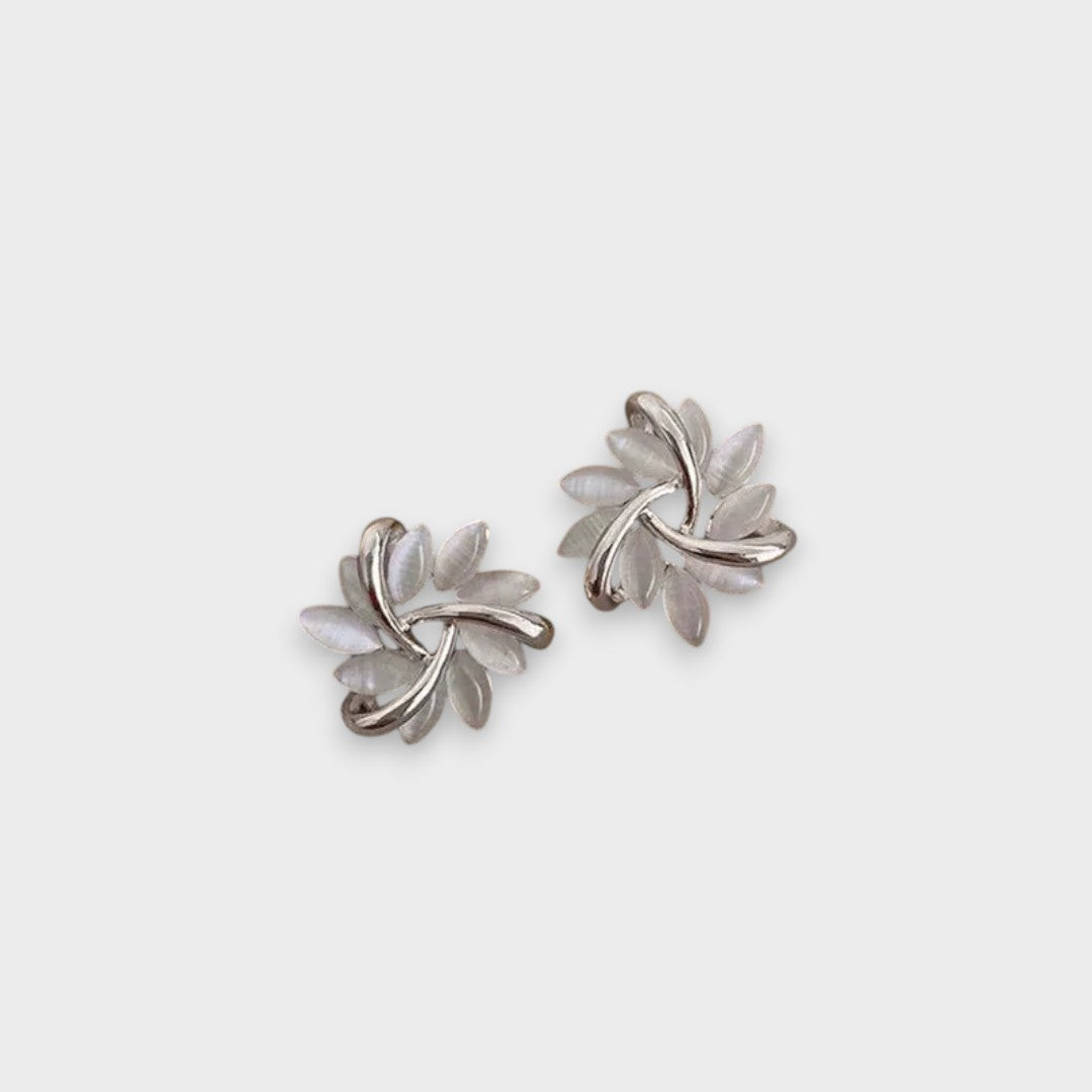 Zarif Parıltı – Nehir | Altın Opal Yapraklı Halka Küpeler