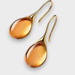 Gümüş ve altın renkteki bu sallantılı küpeler, fasetli kristaliyle ışık ve hareket oyunu yaratır.