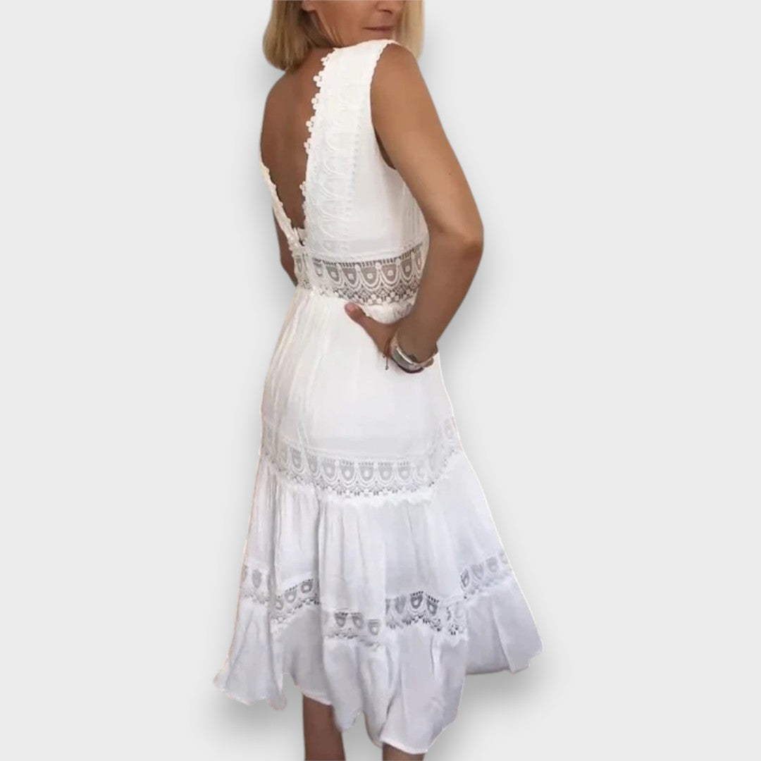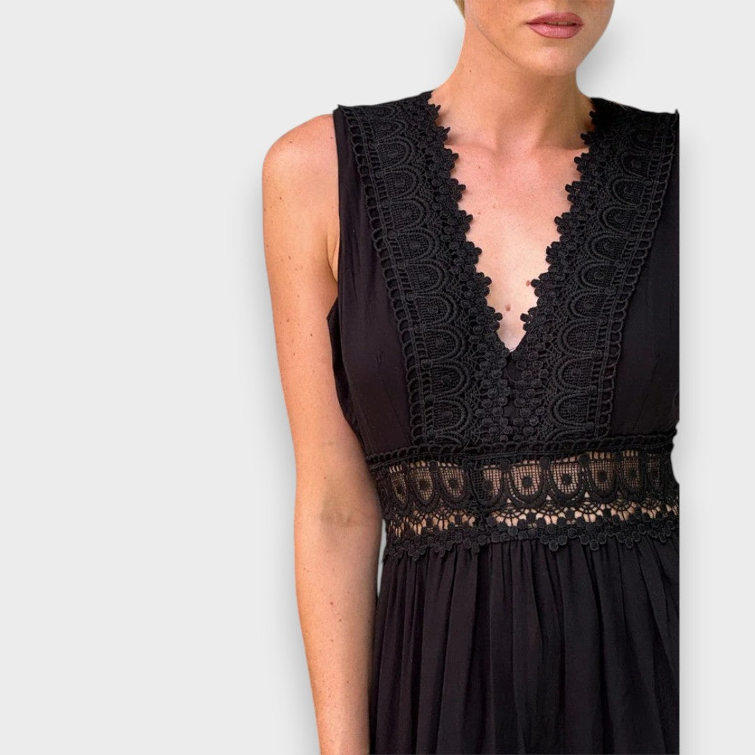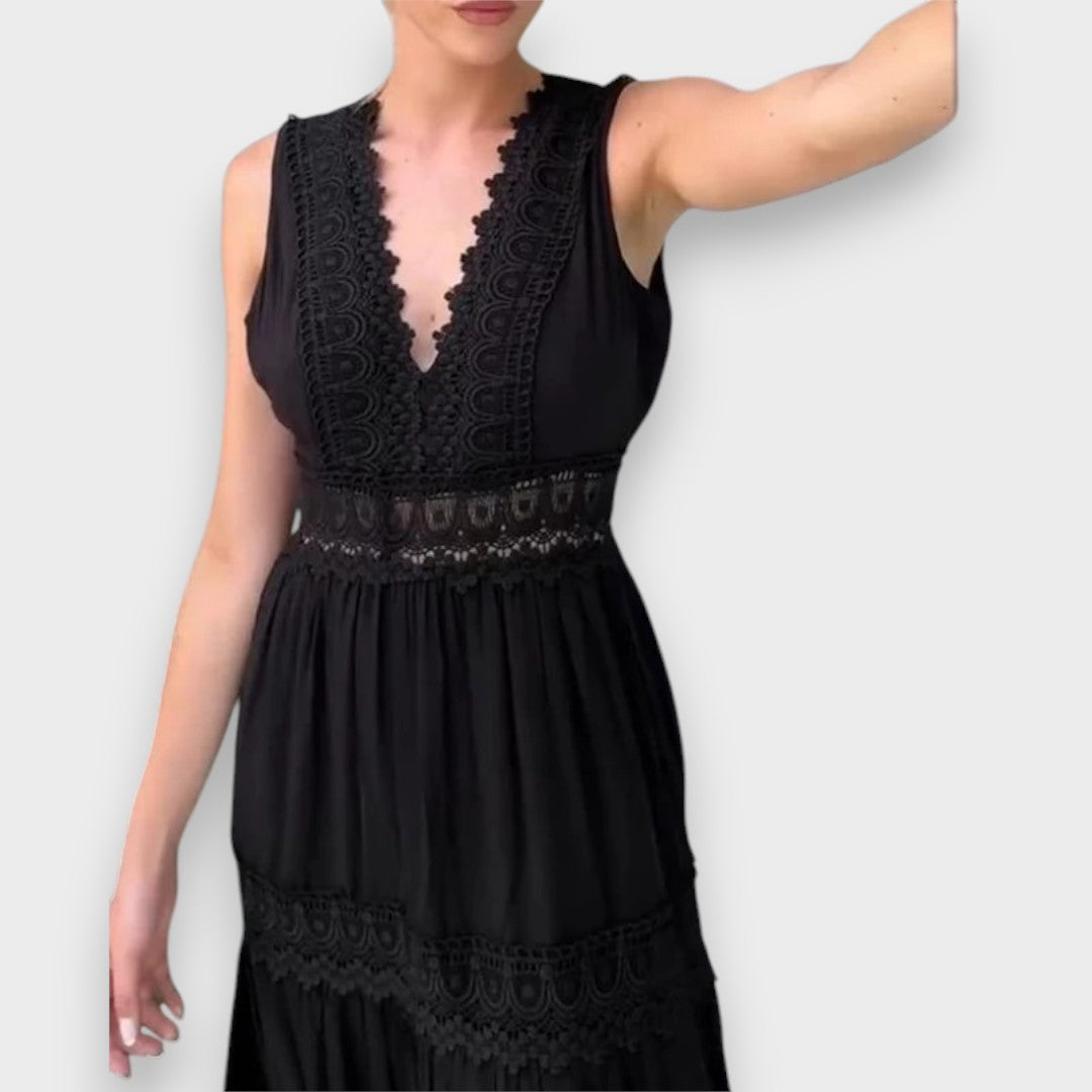 Zekiye™ | Zarif Dantelli V-Yaka Elbise