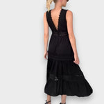 Zekiye™ zarif dantelli V-yaka elbise, sofistike tasarımı ve feminen detaylarıyla göz alıcı bir şıklık sunar. V yaka kesimi boynu zarifçe vurgularken, dantel işlemeleri elbiseye özel bir incelik katar. İster özel davetlerde ister günlük şıklıkta, zamansız tasarımıyla her ortamda stilinizi ön plana çıkarır.